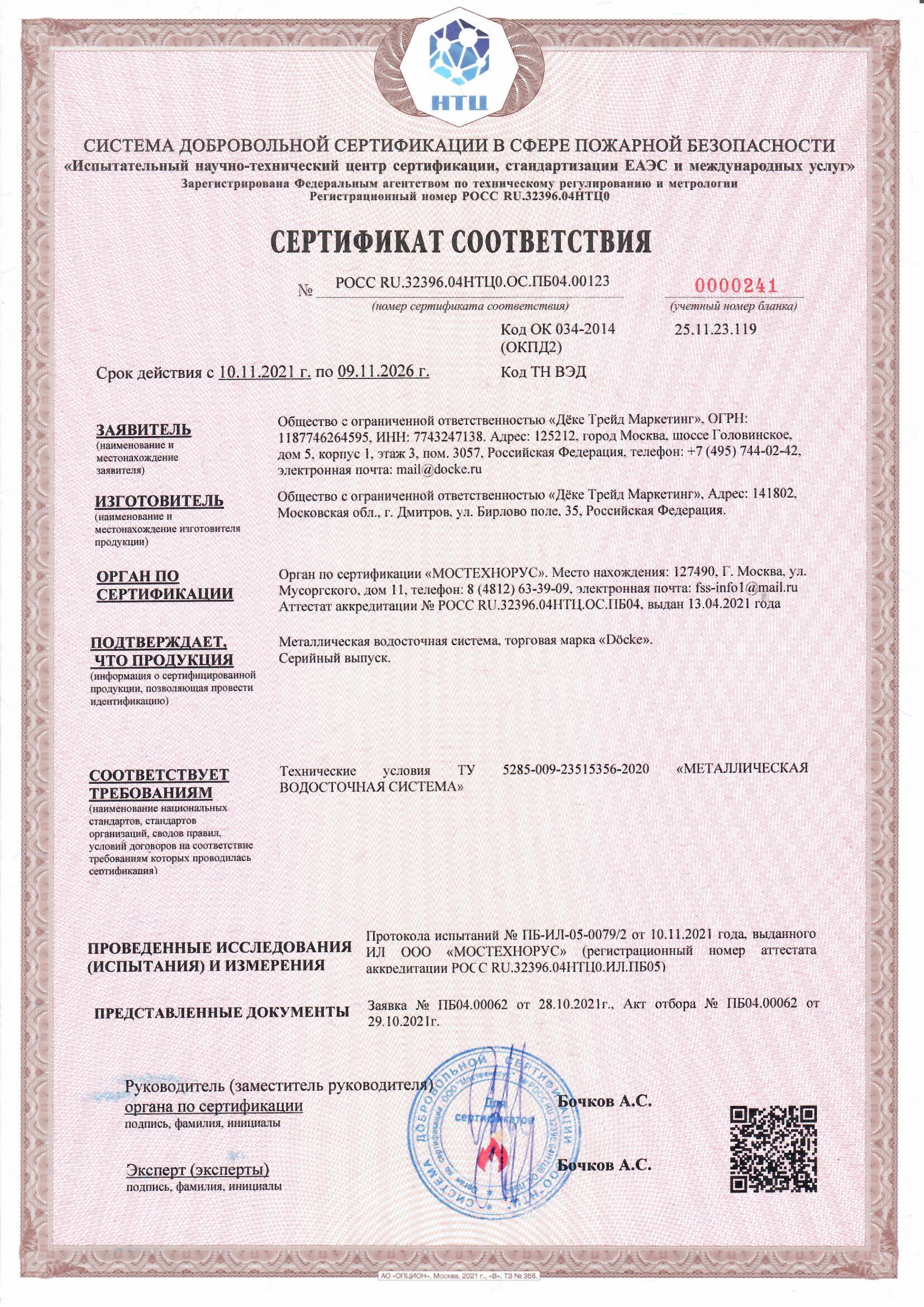 Сертификат соответствия водосток Optima